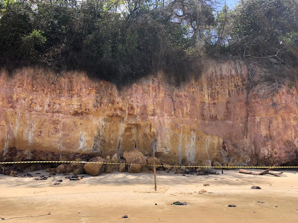 Na tarde dessa quinta (19), a equipe da Secretaria Nacional de Proteção e Defesa Civil esteve no trecho da falésia que desabou ao lado de equipes da Defesa Civil do RN e do Idema para vistoria do local.