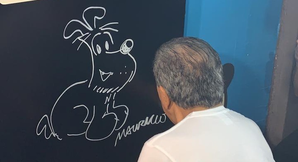 Criador de um dos maiores sucessos infantis, a Turma da Mônica, Mauricio assinou um painel gigante feito em homenagem aos seus 60 anos de profissão.