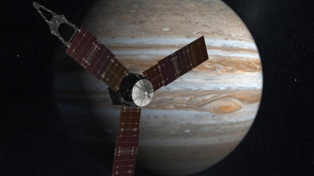 A Nasa celebrou um triunfo vital na madrugada desta terça-feira, depois que a sonda Juno conseguiu entrar com sucesso na órbita de Júpiter em uma missão para investigar a origem do sistema solar. O Jet Propulsion Laboratory dla NASA, em Pasadena, Califórnia, explodiu em comemoração quando a sonda entrou com sucesso na órbita do maior planeta do sistema solar às 03H53 GMT de terça-feira (00H53 Brasília). A sonda não tripula e propulsada por energia solar viajou 2,7 bilhões de quilômetros desde seu lançamento, há cinco anos, de Cabo Canaveral, Flórida. O projeto objetiva conhecer um pouco mais sobre o planeta e sobre o próprio universo.