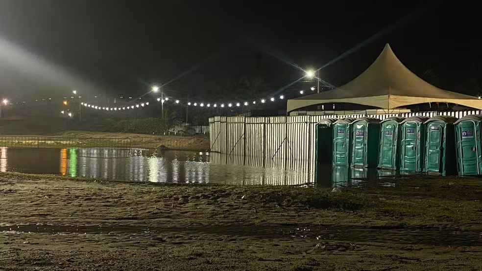 No local, os banheiros químicos estavam alagados. À noite, a área próxima do palco não tinha quase ninguém. O lugar estava escuro e uma equipe da organização desmontava os equipamentos e as luzes.