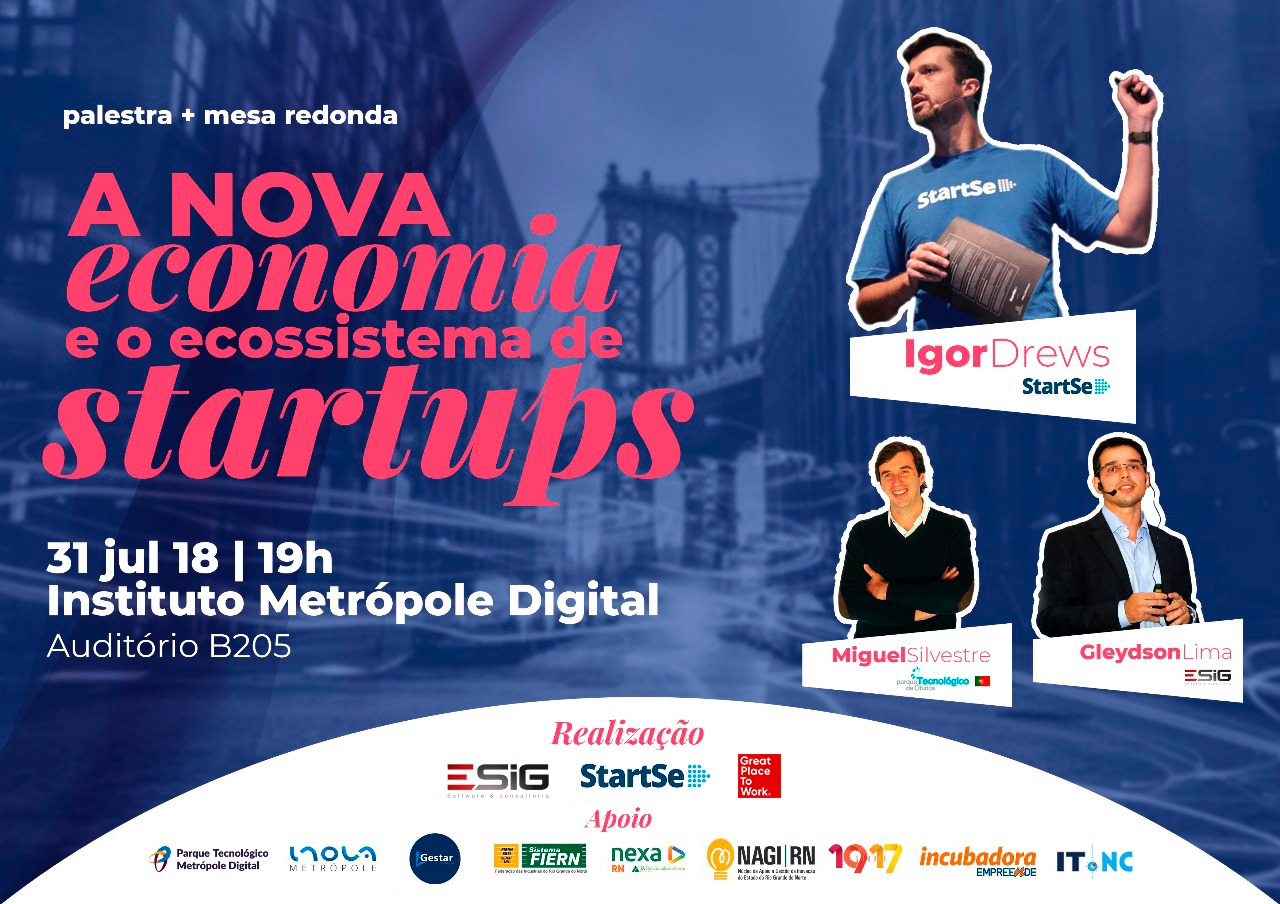 Com foco na inovação, tecnologia e empreendedorismo, o Instituto Metrópole Digital (IMD), em Natal, sedia o evento “A nova economia e o ecossistema de Startups”. Gratuito, o evento acontece na próxima terça-feira (31), às 19h, e conta com palestras e mesas redondas.