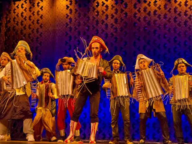 Oito atores e uma atriz se revezam no palco em uma viagem musical pela trajetória do Rei do Baião. Como em qualquer história de homem que vira mito, a vida de Luiz Gonzaga tem passagens em que as versões de seus biógrafos não convergem, em que realidade e fantasia se confundem, e o autor e diretor João Falcão se sentiu livre para tratar mais do mito do que do homem.