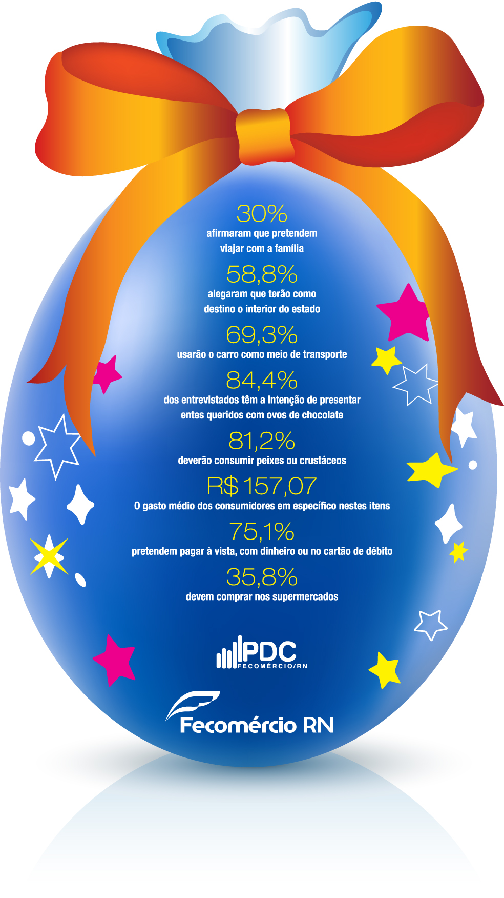 A pesquisa também deixou claro que os natalenses vão manter a tradição na hora de ir às compras. 84,4% dos entrevistados têm a intenção de presentar entes queridos com ovos de chocolate, caixas de bombons, barras de chocolate ou chocolates caseiros e 81,2% deverão consumir peixes ou crustáceos. O gasto médio dos consumidores em produtos típicos da época será de R$ 157,07.