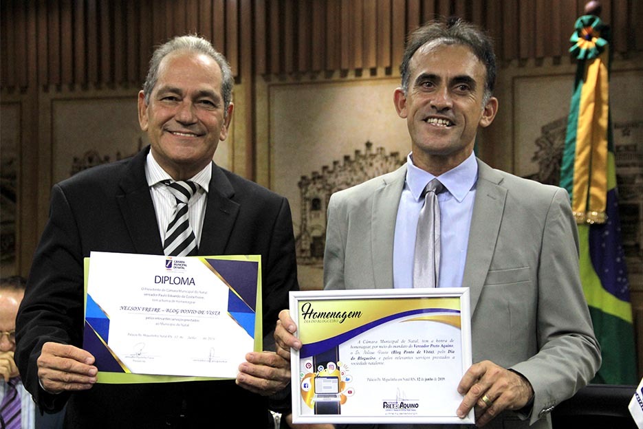 O Editor do Blog Ponto de Vista, Nelson Freire, foi homenageado nessa última quarta-feira (12) em uma solenidade aos blogueiros e influenciadores digitais do estado, na Câmara dos Vereadores de Natal. A proposta foi feita pelo vereador Preto Aquino (Patriota).