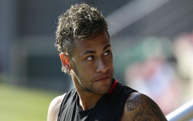 FC Barcelona´s Neymar attends a training session at the Sports Center FC Barcelona Joan Gamper in Sant Joan Despi, Spain, Monday, July 17, 2017. (AP Photo/Manu Fernandez)