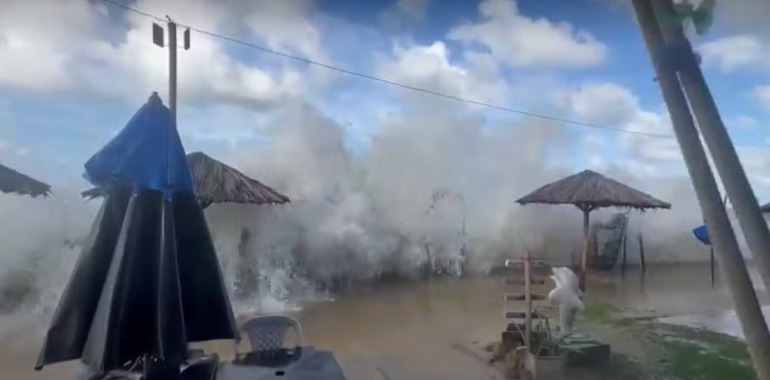 A força da água registrada invadindo uma barraca em Muriú, na cidade de Ceará-Mirim, chamou a atenção nas redes sociais. O caso aconteceu na barraca Estrela de Davi no fim de semana (veja vídeo mais abaixo).