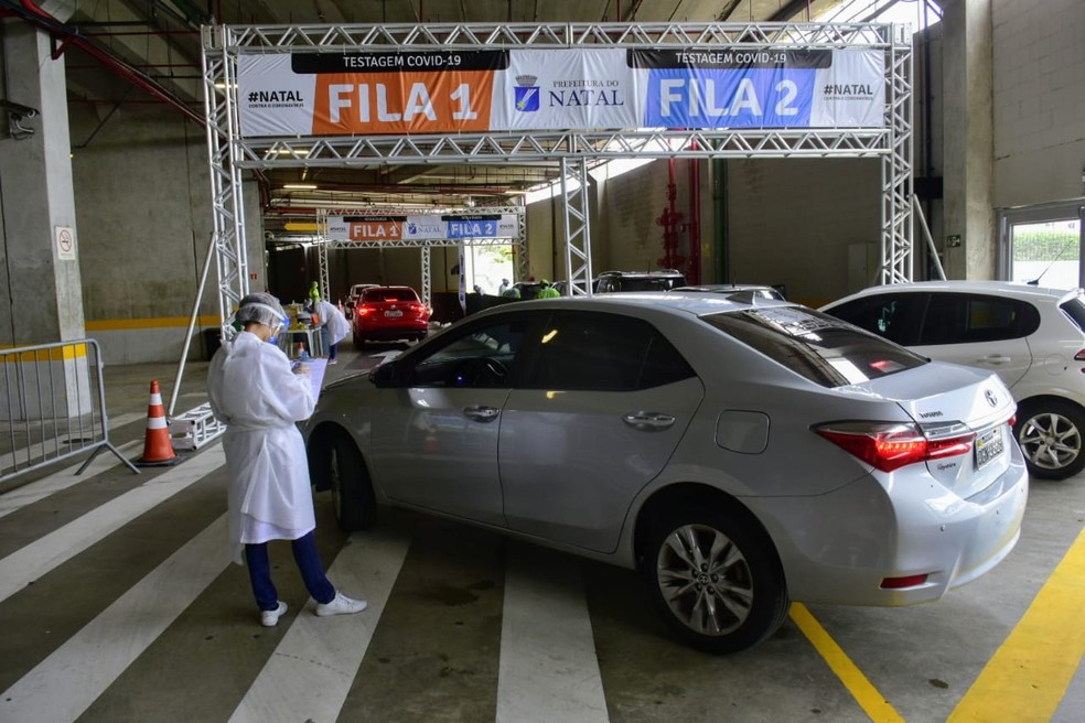 O “drive-thru” está sendo realizado no Ginásio Nélio Dias, que fica no bairro Lagoa Azul. Na terça (22), primeiro dia em que o projeto foi realizado na ZN, foram 1.446 exames aplicados, dos quais 328 deram positivo.