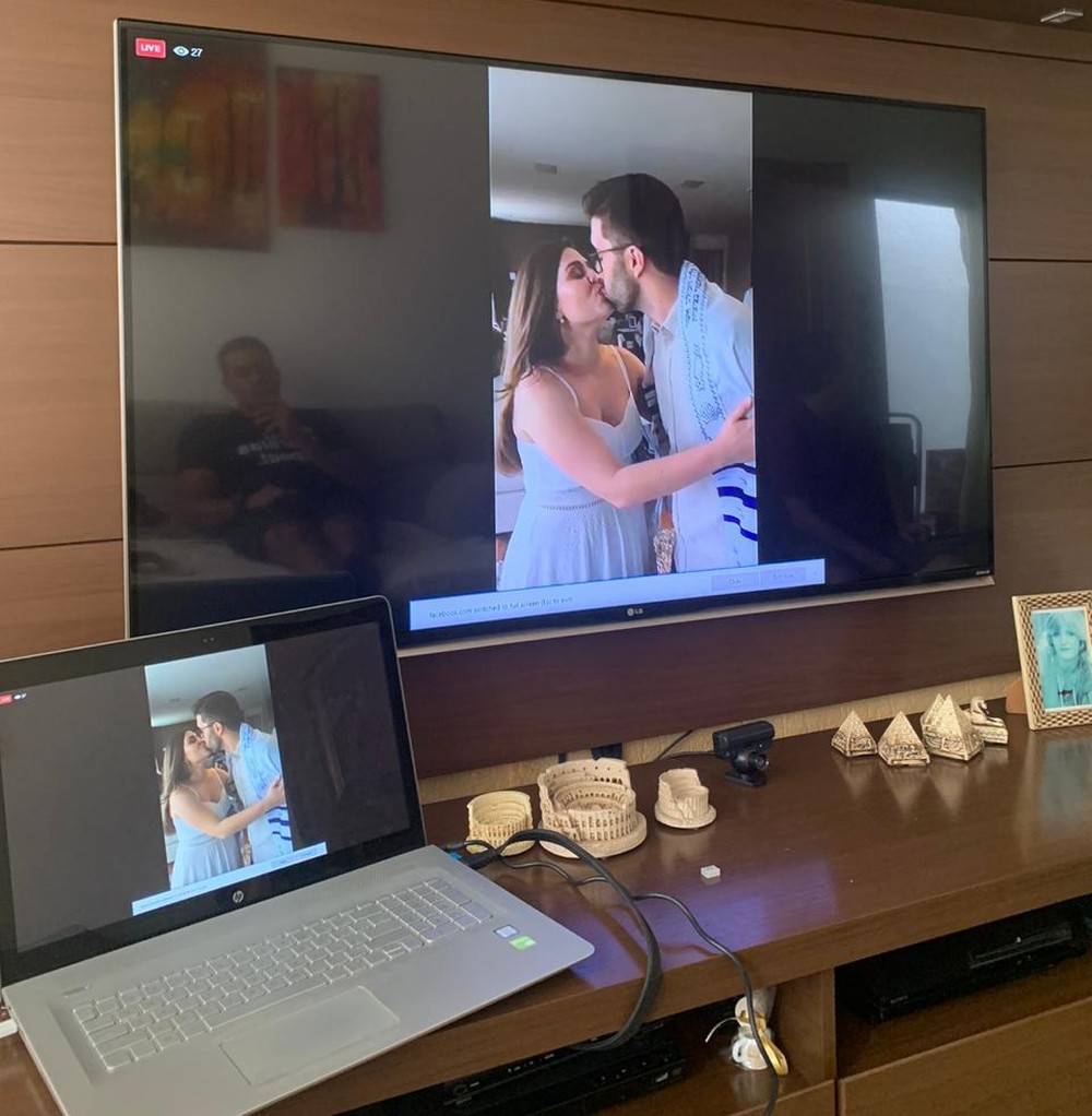 Assim, apesar do cancelamento a dois dias da festa, que teve um custo de R$ 45 mil, os cerca de 40 padrinhos e outros convidados puderam conferir a transmissão ao vivo via Facebook.