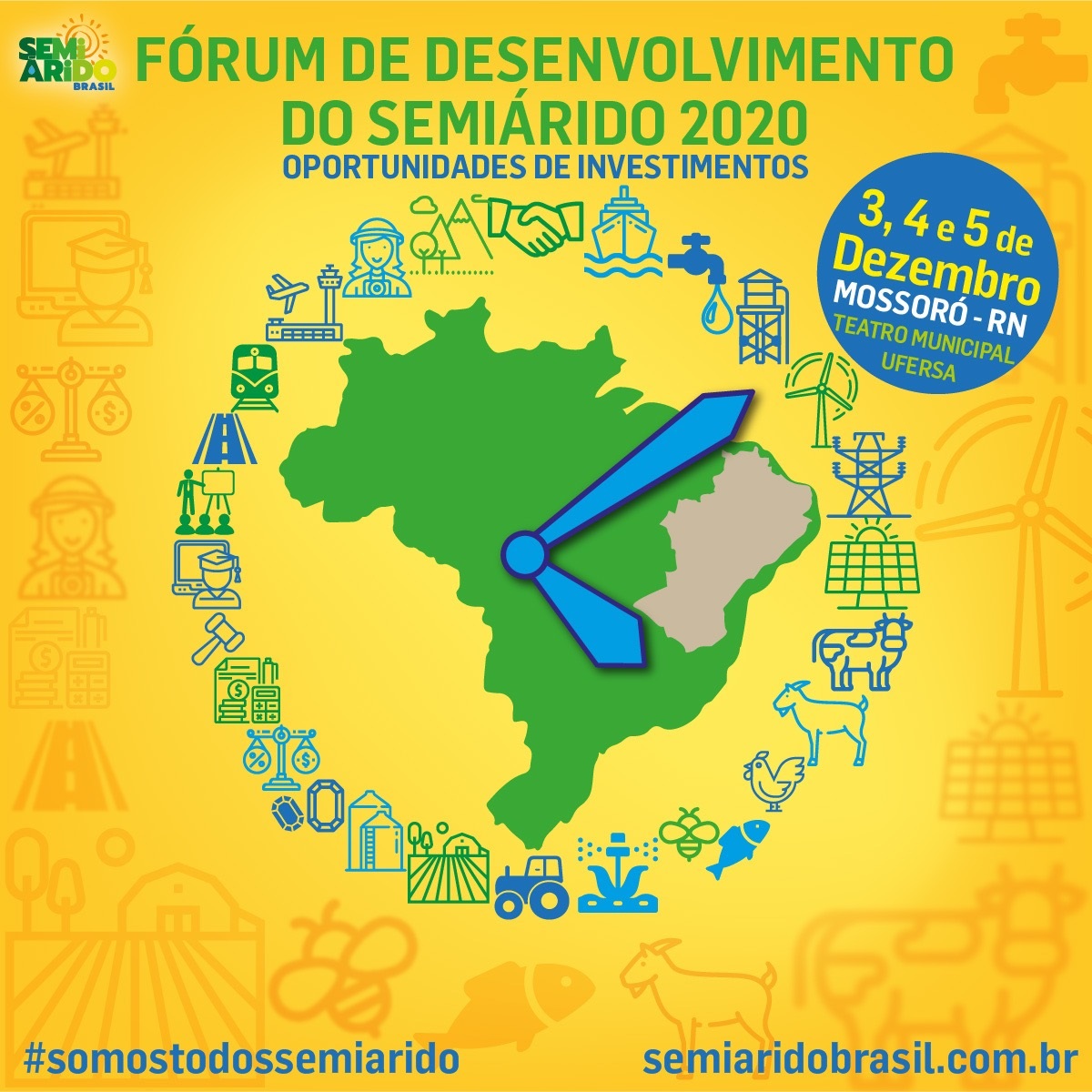 O Fórum de Desenvolvimento do Semiárido 2020 desembarca em Mossoró (RN) nos dias 3 a 5 de dezembro e irá mobilizar a região Nordeste. O evento, criado pela Frente Parlamentar Mista em Prol do Semiárido, sob a Presidente do Deputado Federal do RN General Girão, tendo como 1º Vice Presidente o Senador Eduardo Girão e 2ºVice Presidente o Deputado Federal do RN João Maia, vai promover um amplo debate que irá fomentar o Plano de Desenvolvimento do Semiárido (PDS). A programação do evento conta com a participação de autoridades do país, Embaixadores, bem como de palestrantes, especialistas e técnicos de todo o país. O vice-presidente, Hamilton Mourão, marcará presença na abertura do Fórum.