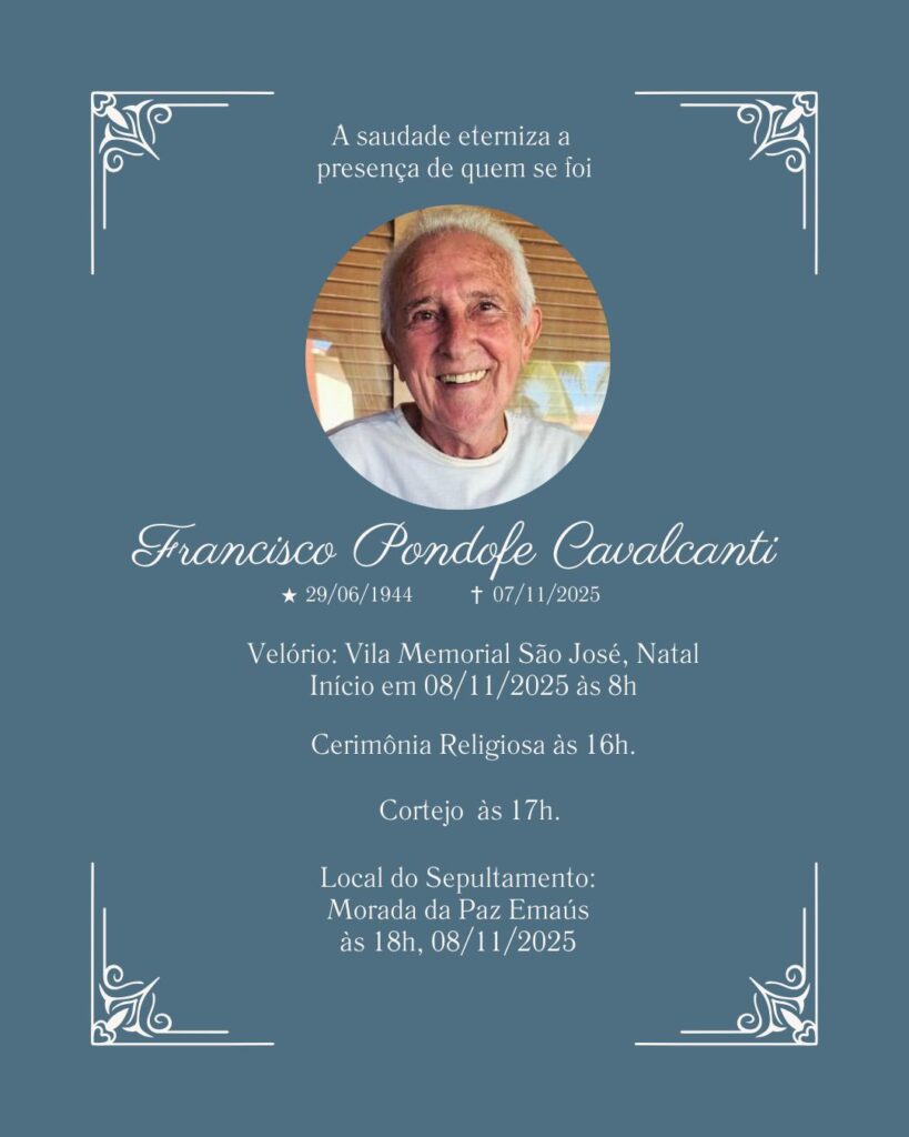 Nós que fazemos o Blog Ponto de Vista prestamos nossos sentimentos aos familiares e amigos de Francisco Pondofe Cavalcanti, falecido aos 81 anos, na última sexta-feira (7). Ele estava internado com problemas respiratórios.