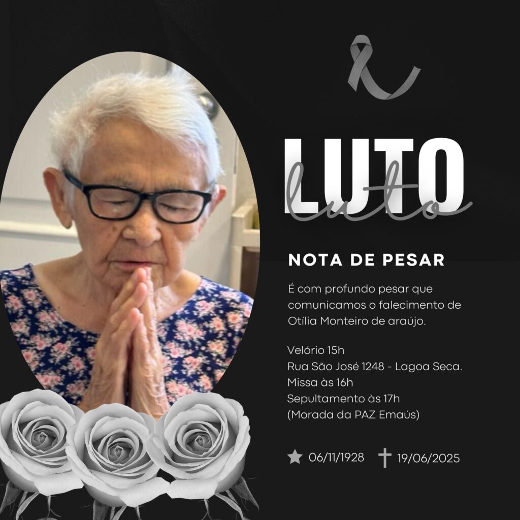 Nós que fazemos o Blog Ponto de Vista prestamos nossos sentimentos aos familiares a amigos de Otília Monteiro de Araújo, falecida nessa quinta-feira (19). O velório foi realizado às 15h, no Morada da Paz da Rua São José, 1248 e o sepultamento às 17h no Morada da Paz de Emaús.