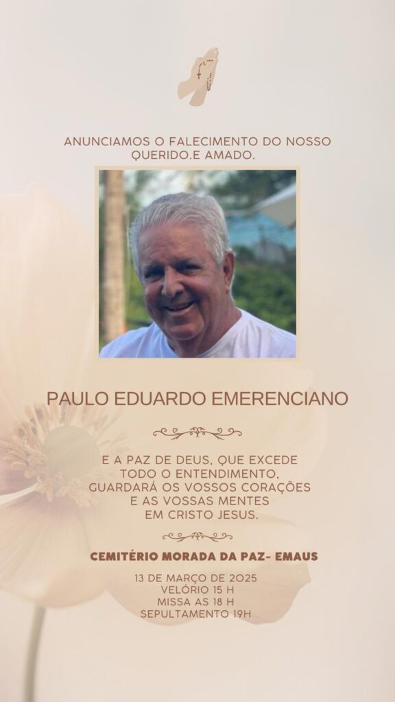 Nós que fazemos o Blog Ponto de Vista prestamos nossos sentimentos aos familiares e amigos de Paulo Eduardo Emerenciano, falecido nessa quinta-feira (13).
