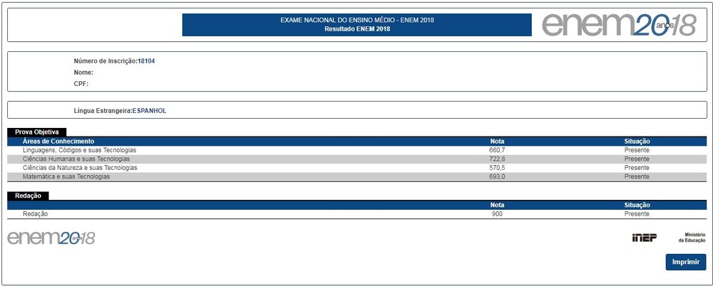 De acordo com o Inep, o resultado dos treineiros e o espelho da redação estarão disponíveis no dia 18 de março.