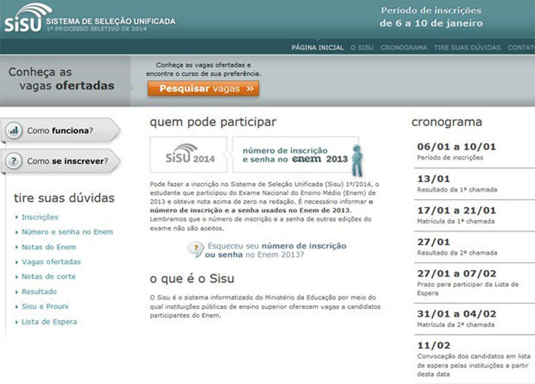 Cronograma do Sisu 2014