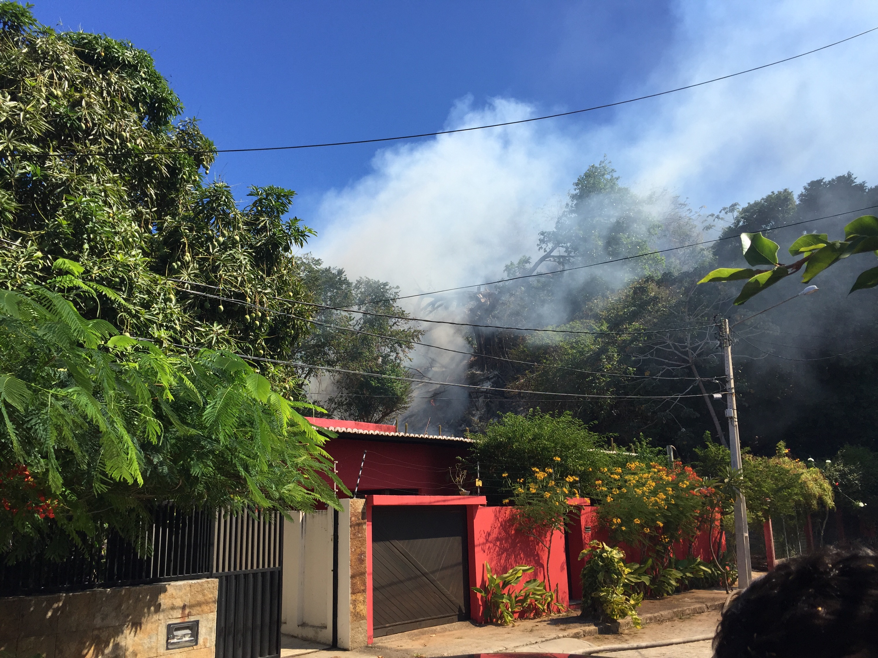 Abaixo, flagrantes de novo incêndio na mata em Mãe Luiza, debelado pelo Corpo de Bombeiros agora no início da tarde. É o segundo que ocorre esta semana. Há suspeitas de que o incêndio seja criminoso.