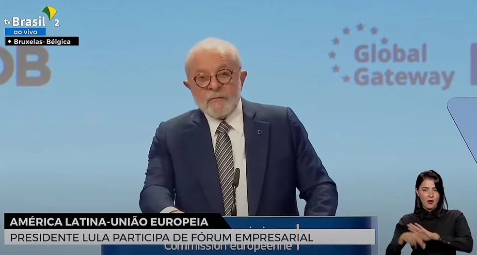 O presidente Luiz Inácio Lula da Silva (PT) discursou a empresários latino-americanos e europeus nesta segunda-feira (17) em Bruxelas, na Bélgica.