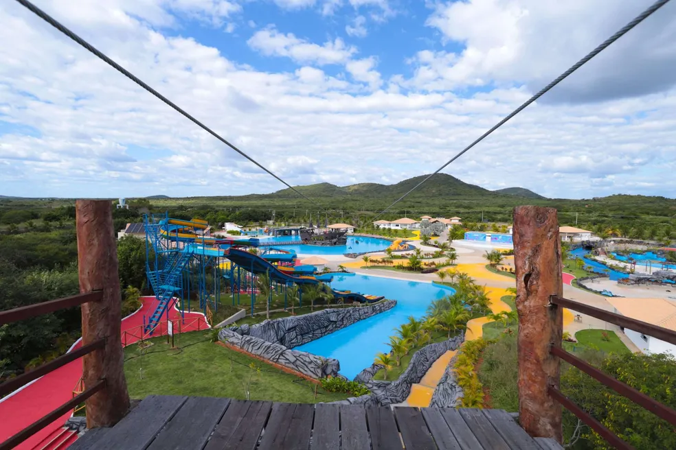A estrutura ainda tem 11 piscinas e 20 atrações, com hidromassagens, descida de tirolesa com uma vista panorâmica para a região e um espaço para show que comporta mais de 10 mil pessoas.