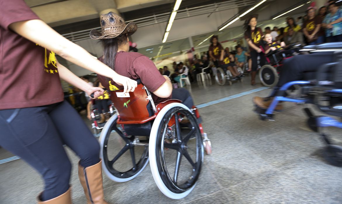 Brasília - A Coordenação de Pessoas com Deficiência (Promodef) do DF realiza atividades em comemoração ao Dia Nacional de Luta da Pessoa com Deficiência, na estação 112 Sul do metrô (Marcelo Camargo/Agência Brasil)