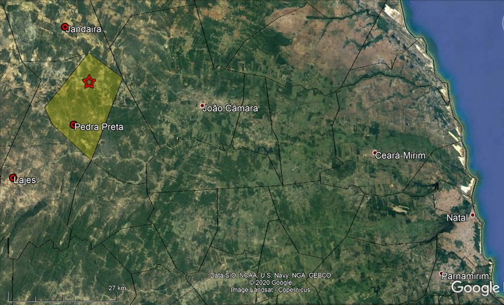 Um tremor de magnitude 2.2 foi registrado na noite de sexta-feira (11) em Pedra Preta, município no interior do Rio Grande do Norte com cerca de 18 mil habitantes e distante cerca de 140 quilômetros de Natal. O evento foi confirmado pelo Laboratório Sismológico da UFRN (LabSis/UFRN), que captou a atividade às 23h29.