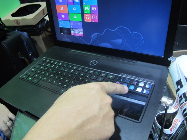 O diferencial do Blade Pro é uma pequena tela sensível ao toque posicionada ao lado do teclado. Ela apresenta informações de aplicativos do computador e dos jogos que estão nele. Cada tecla de LED apresenta o nome do jogo ou do aplicativo e na tela abaixo é possível realizar algumas configurações. O jogador pode criar atalhos específicos dependendo do jogo em questão e até navegar pela web na pequena tela enquanto se joga um game na telona. Outra versão é o Blade, que tem tela de 15 polegadas. Com configuração um pouco menor do que a versão Pro, a previsão de preço para o Brasil, diz o executivo, ficará entre R$ 8 mil e R$ 9 mil quando o produto chegar em 2014.
