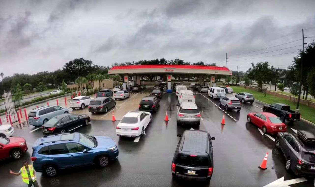 Longas filas se formaram nos postos de gasolina de Tampa e longos trechos de trânsito foram registrados nesta segunda na Interstate 75, rodovia que vai para o norte do estado, enquanto os evacuados fugiam antes da chegada de Milton.