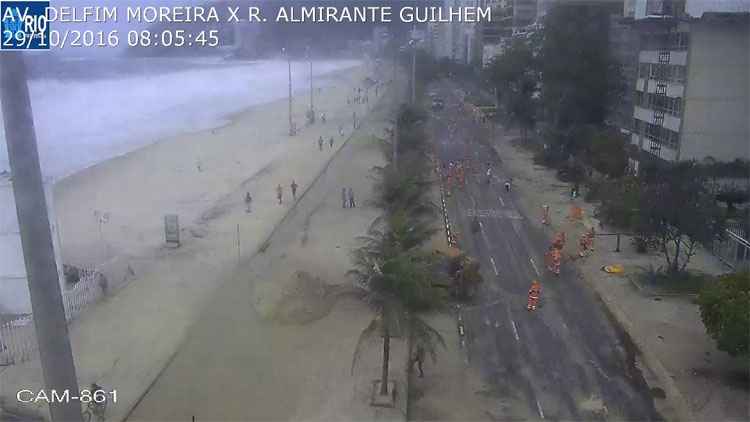 Ondas gigantes inundaram a orla do Leblon, um dos endereços mais cobiçados do Rio, na madrugada deste sábado. Uma forte ressaca levou à interdição total da Avenida Delfim Moreira, considerado o trecho mais nobre da zona sul da cidade. A água invadiu quiosques, danificou deque e destruiu peças de mobiliário. O asfalto amanheceu coberto de areia, impedindo a passagem dos carros. O trânsito foi interditado nos dois sentidos da avenida litorânea, entre a rua Bartolomeu Mitre e o Jardim de Alah, segundo o Centro de Operações da Prefeitura. Uma equipe de garis da Comlurb trabalhava na limpeza do local. A Marinha do Brasil emitiu aviso de ressaca em todo o litoral do Rio até 22h deste sábado. Segundo o informe, as ondas poderiam variar de 2,5 a 4 metros de altura. Já a Prefeitura mantém o alerta de ressaca até 10h de segunda-feira, (31). Parte da ciclovia Tim Maia, também na orla, foi interditada preventivamente na noite de sexta-feira, no trecho entre São Conrado e Barra da Tijuca.