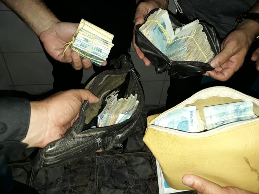 Além do dinheiro, armas e drogas também foram apreendidas.