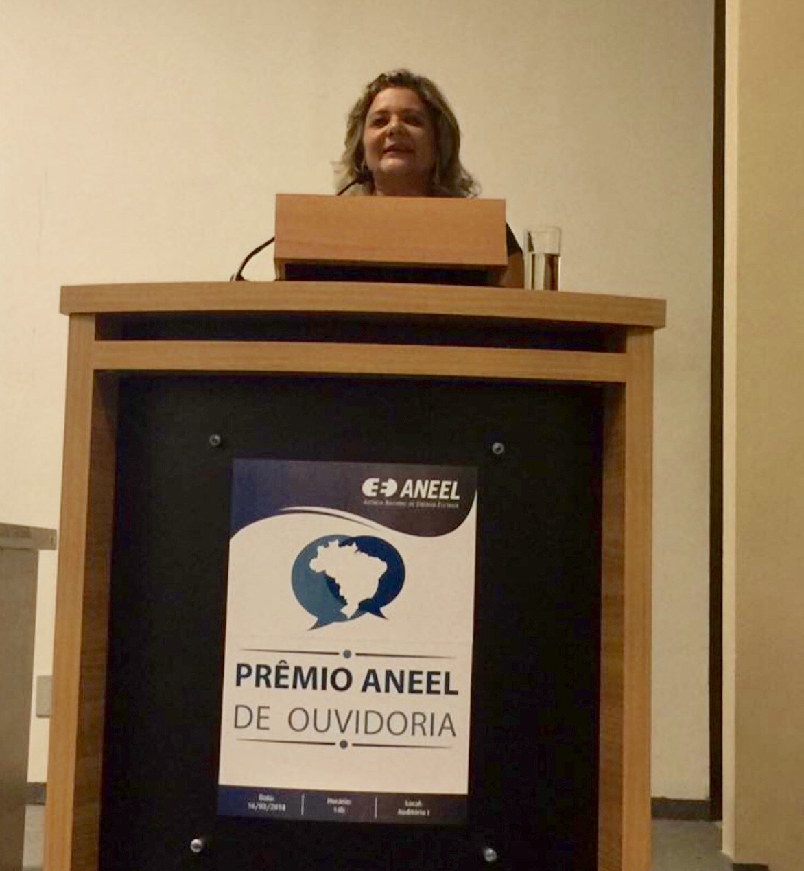 Esta semana a Agencia Nacional de Energia Elétrica – ANEEL – realizou na sua sede em Brasilia a solenidade de premiação das melhores Ouvidorias de distribuidoras de energia eletrica do país. A Ouvidoria da COSERN foi a grande vencedora, tendo sido classificada em primeiro lugar entre as demais. Na ocasião a sua Ouvidora Geral, Maria Aparecida Oliveira (foto acima) discursou agradecendo o prêmio em nome dos demais membros da sua equipe. O Conselho de Consumidores de Energia Elétrica da Cosern prestigiou o evento e foi representado na solenidade pelo seu membro Itamar Manso Maciel, presidente da ACRN. (foto abaixo)