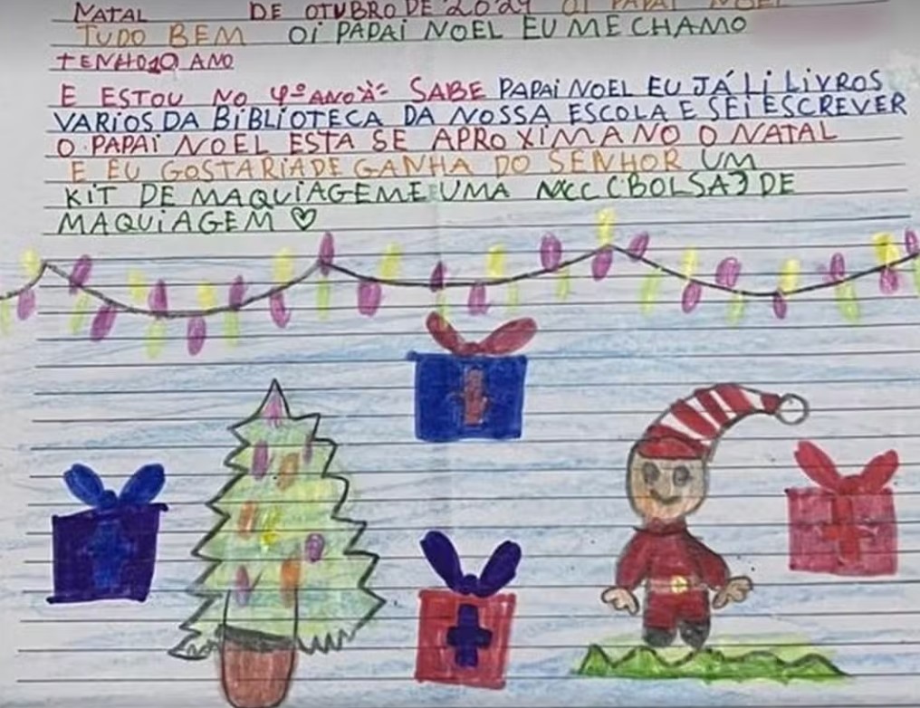 Patins, carrinho de controle remoto, material escolar, roupa, maquiagem, bola. Os pedidos são diversos. Segundo os Correios, as cartas são de crianças de escolas públicas, de projetos sociais e da sociedade civil como um todo.