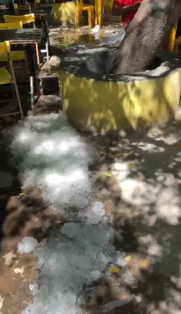 A novidade no bar foi compartilhada nas redes sociais nesse sábado (25) por vários clientes e as imagens viralizaram. Os administradores do local optaram por derramar gelo no chão, entre as mesas, para o público poder se refrescar.