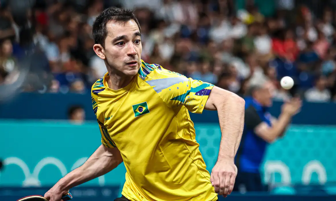 O mesa-tenista brasileiro Hugo Calderano está nas oitavas de final dos Jogos Olímpicos de Paris. Na segunda rodada do torneio de tênis de mesa, o atleta carioca teve um jogo difícil contra o espanhol Alvaro Robles. O adversário começou melhor, levando a primeira parcial pro 11/7. Hugo deu o troco levando as parciais seguintes por 13/11 e 11/9. Robles voltou a endurecer o confronto, e venceu o quarto set por 11/8, deixando tudo empatado em 2 a 2. Aí Calderano voltou a tomar o controle da partida. Venceu a quinta parcial por 11/3 e encerrou o sexto e último set em 11/5, fechando o jogo de virada por 4 a 2, em 53 minutos de duelo.