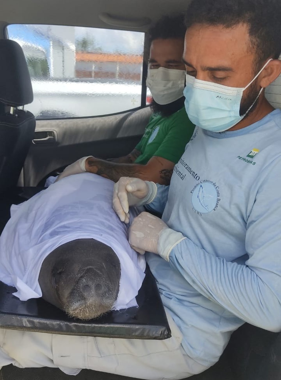 O animal – da espécie Trichechus manatus – foi transferido para a base do Projeto Cetáceos da Costa Branca-UERN em Natal para realizar os procedimentos de avaliação médico-veterinária e estabilização, incluindo hidratação e alimentação.