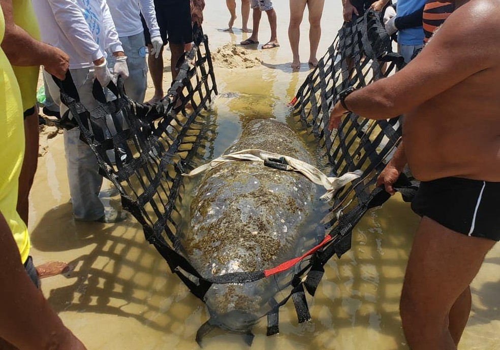 Uma equipe do Cetáceos da Costa Branca (PCCB-UERN) foi acionada pelos militares. Pessoas que estavam na praia também ajudaram pesquisadores e bombeiros a colocarem o animal em um veículo para o transporte.