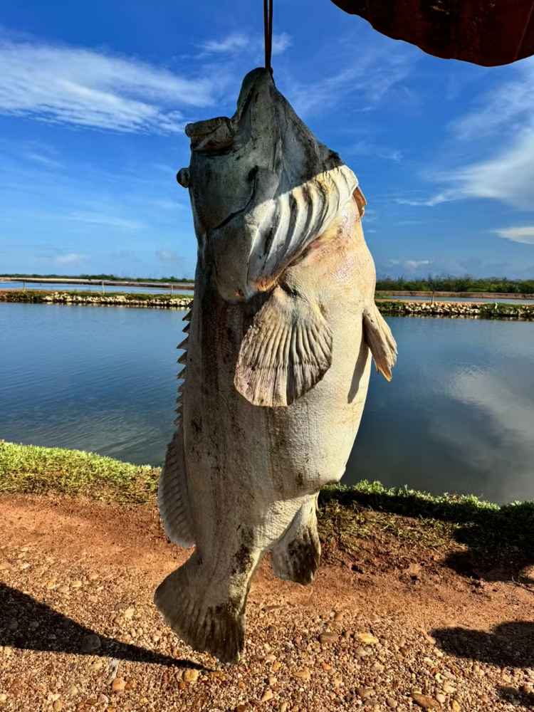 Um peixe de aproximadamente 200 kg foi encontrado já morto em um canal de abastecimento de uma fazenda de produção de camarão localizada em Pendências, região Oeste potiguar, na manhã dessa terça-feira (5).