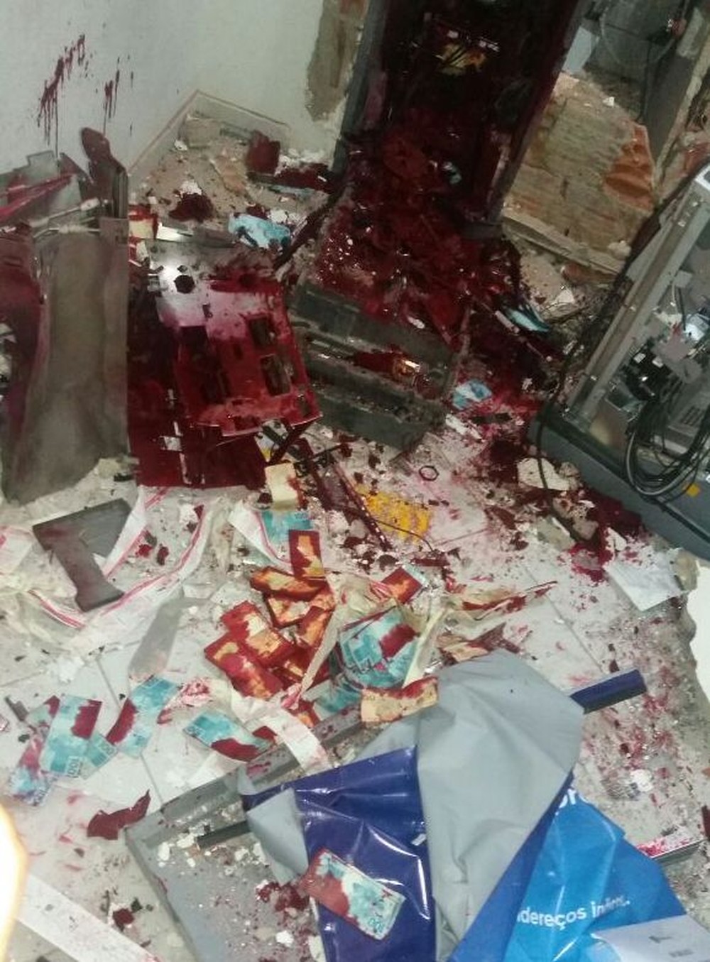 A PM acredita que o dinheiro não foi levado porque o dispositivo de segurança do caixa liberou uma tinta especial e manchou as cédulas. Muitas delas ficaram espalhadas pelo chão.
