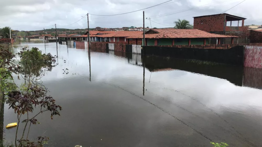 A água acumulada das chuvas que caem desde o último fim de semana alagou várias ruas e casas de Barreta, distrito de Nísia Floresta, no litoral Sul potiguar. “Perdemos tudo, chegou a hora de pedir socorro”, diz a dona de casa Aline dos Santos.