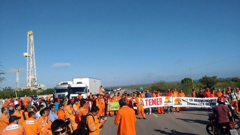 O Sindicato dos Petroleiros do Rio Grande do Norte (Sindipetro) realizou um protesto contra o governo do presidente interino Michel Temer (PMDB) no início da manhã de hoje (10), na cidade de Mossoró, na região Oeste do Estado.