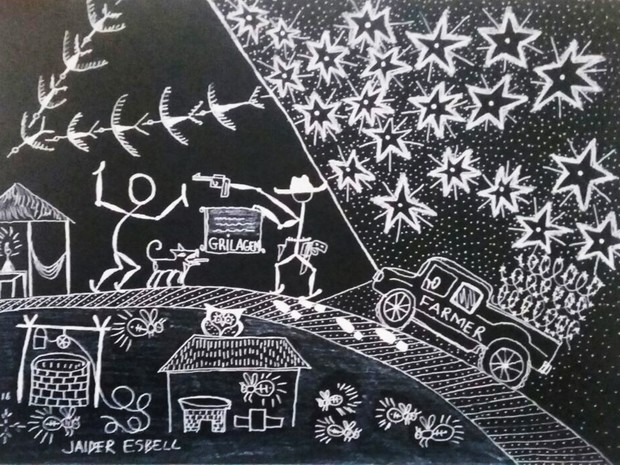As parcerias envolvem mídia, estrutura e pessoas sensíveis à arte e ao diálogo focado por meio de vivências socioculturais. Ativistas de diferentes bandeiras, instituições como Universidades Federais, empresas e pessoas da comunidade são solidárias entre diversos organismos da sociedade. Em Natal, Ozany Gomes, ativista cultural com diversas pessoas, montaram a agenda do artista. Quem hospeda Jaider Esbell em Natal é Maria Ozanilda, mãe do escritor Ricardo Dantas, radicado em Roraima. “A itinerância privilegia contatos espontâneos e interativos com as culturas locais especialmente com comunidades indígenas”, acrescenta.