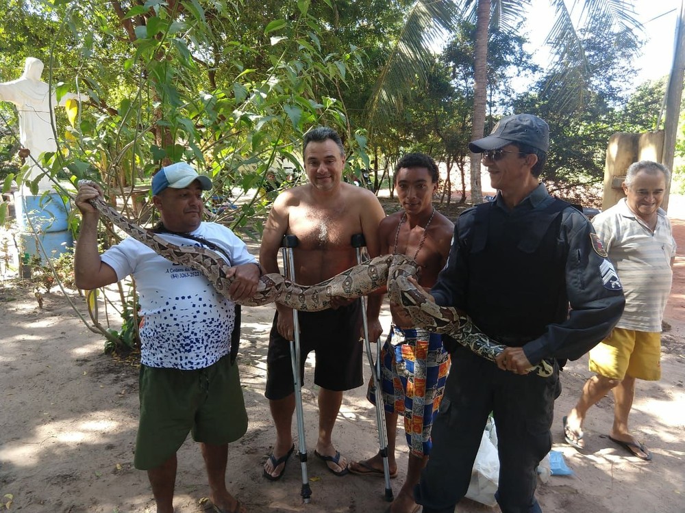 A equipe da PM foi acionada na tarde desta segunda após moradores encontrarem uma cobra, possivelmente da espécie jiboia, em uma casa no distrito Boqueirão. Os policiais entregaram a cobra no aquário da capital potiguar, localizado na praia da Redinha.