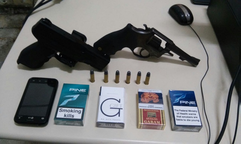 Policiais do 11º Batalhão de Polícia Militar (11º BPM) detiveram ontem à tarde na Rua Henrique Dias, no Bairro Igapó, na zona Norte de Natal, três pessoas suspeitas de terem roubado um veículo em Extremoz e realizarem roubos no Bairro Potengi, em Natal. As viaturas estavam em patrulhamento quando no cruzamento da Rua Irmã Vitória abordaram os ocupantes que estavam em um Fiat, de cor branca, com registro de roubo, sendo recebidos a tiros pelos meliantes. De pronto os policiais revidaram a injusta agressão. Um ocupante do veículo foi alvejado e conduzido Hospital Santa Catarina. Os outros dois, identificados por Suélio Santos, de 21 anos, e Jorge Gleison, de 22 anos, foram levados à Delegacia de Plantão da zona Norte. Com eles a PM apreendeu um revólver calibre 38 e um simulacro de Pistola.