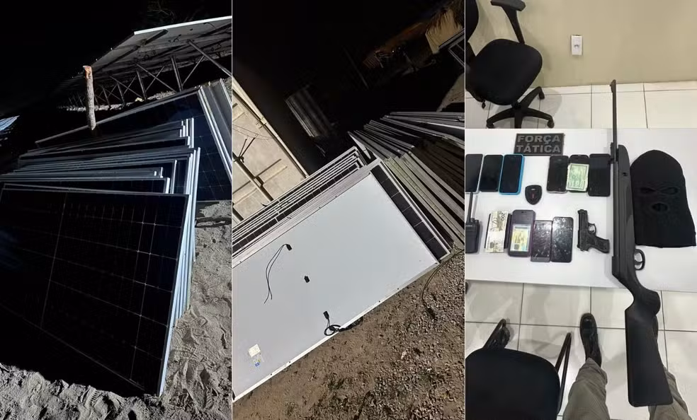 Os criminosos já haviam removido 166 placas fotovoltaicas, que foram recuperadas no local. Além das placas, a PM apreendeu celulares, documentos, uma espingarda de pressão e os materiais encontrados com os primeiros detidos.