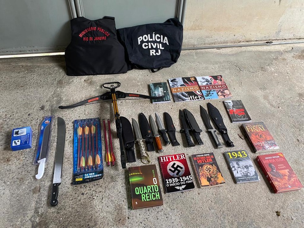 As prisões foram em Campos dos Goytacazes, no Norte Fluminense; em Valença, no Centro-Sul do RJ; e em Suzano, na Região Metropolitana de São Paulo. Lá, a polícia apreendeu facões, arco e fechas e livros sobre o nazismo.