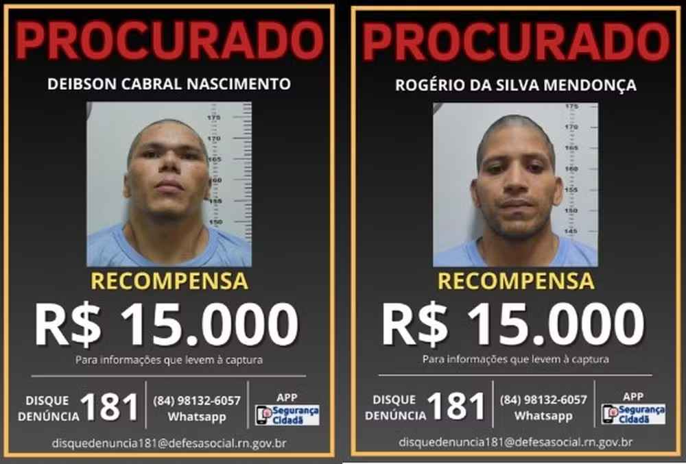 A força-tarefa que busca pelos dois fugitivos do presídio de segurança máxima de Mossoró (RN) encontrou um celular que teria sido usado por Rogerio da Silva Mendonça e Deibson Cabral Nascimento em uma das trilhas que estão sendo percorridas na área do cerco policial, no domingo (25). Cinco pessoas envolvidas em ajudar os presos após a fuga foram presas.