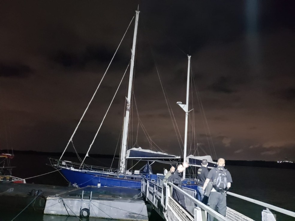De acordo com a polícia, a interceptação do veleiro Lamia ocorreu com autorização das autoridades panamenhas. A embarcação teria partido do continente europeu com a droga.
