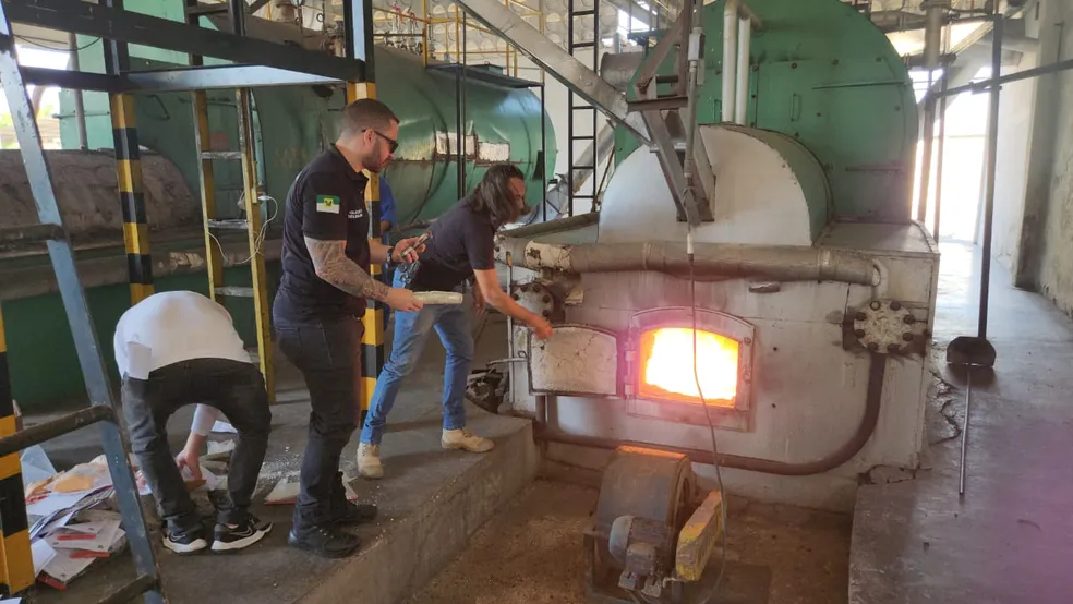 O material foi queimado durante a tarde em uma fábrica de beneficiamento de castanha, que fica às margens da BR-304.