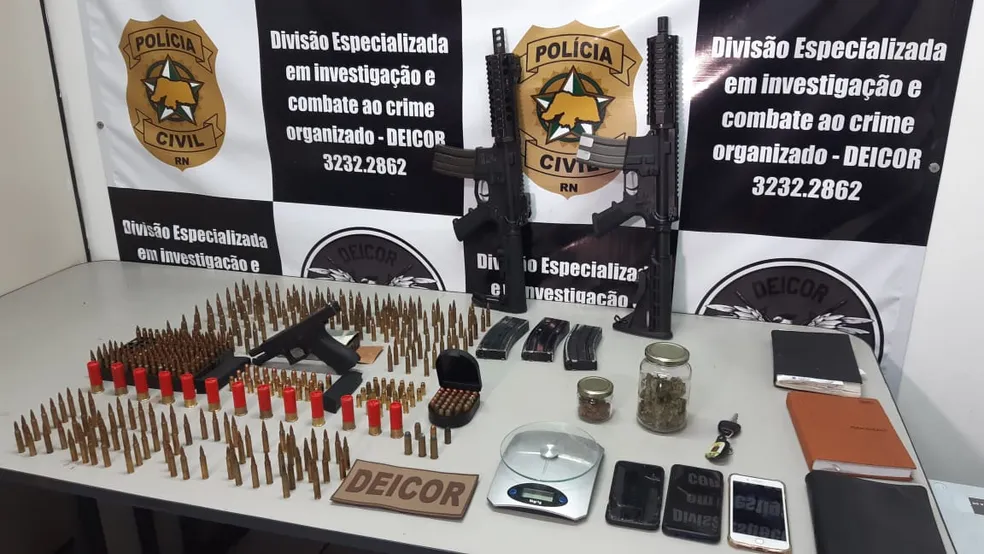 A operação terminou com a apreensão de aparelhos celulares, substância orgânica semelhante à maconha, R$ 130 mil em espécie, um fuzil, uma carabina, uma espingarda e duas pistolas.