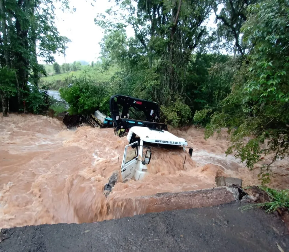 Fortes chuvas atingem regiões do Estado desde segunda-feira(10). O desabamento da ponte aconteceu pela manhã. Segundo a equipe de resgate, o caminhão não estava mais no local quando os socorristas chegaram. Uma foto do caminhão foi tirada por populares antes do socorro chegar ao lugar.