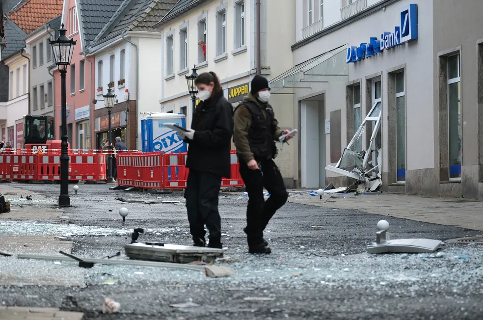 A cidade alemã de Ratingen, que teve dois caixas detonados em março, fica a apenas 70 quilômetros da fronteira holandesa. O estado da Renânia do Norte-Vestfália, o mais populoso da Alemanha e que compartilha 387 quilômetros de fronteira com a Holanda, foi palco de 182 detonações de caixas eletrônicos registradas em solo alemão em 2022. A Baixa Saxônia, que também faz fronteira com a Holanda, registrou 68 casos.