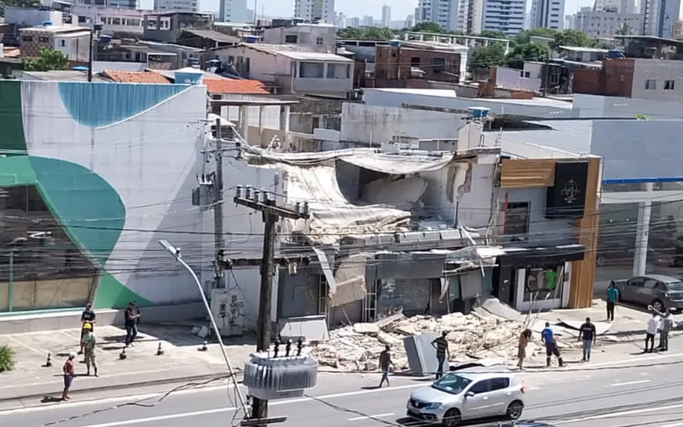 O edifício ficava no número 256 da Avenida Domingos Ferreira, ao lado de uma loja de roupas. Imagens enviadas ao WhatsApp da TV Globo mostram que o primeiro andar do prédio desmoronou, mas o térreo seguiu de pé.