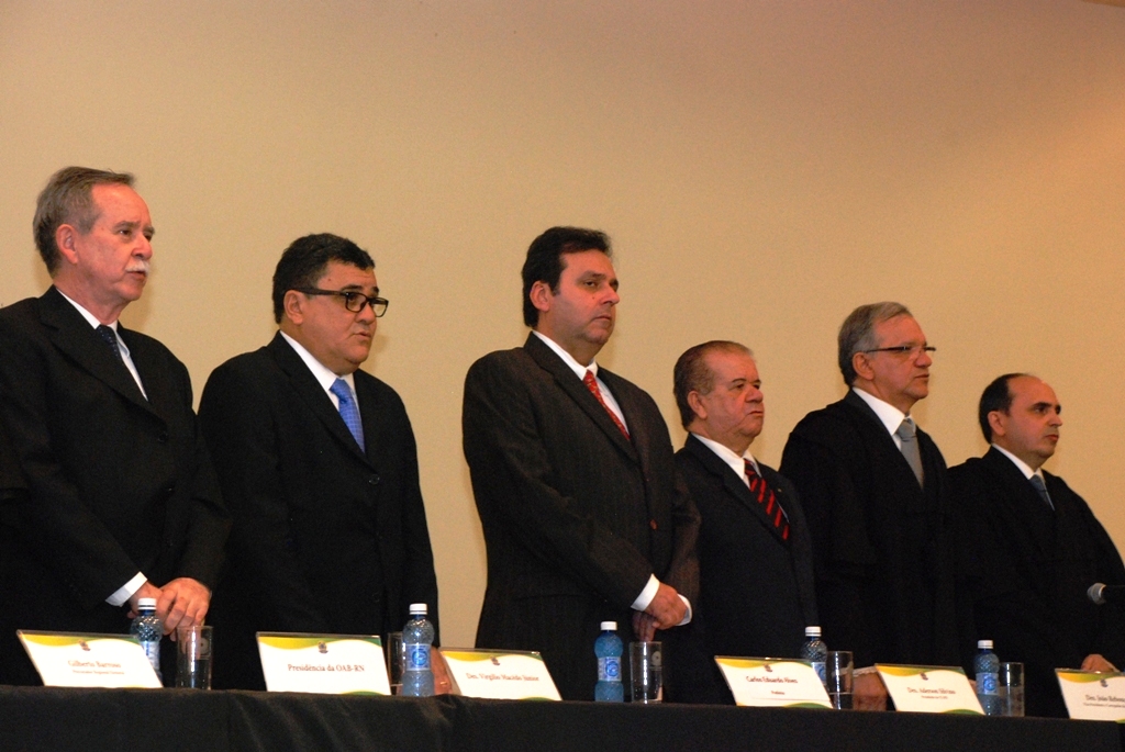 O prefeito de Natal, Carlos Eduardo, prestigiou na tarde de ontem, no auditório do Centro de Operações da Justiça Eleitoral (COJE), a solenidade de posse do novo presidente e da nova vice-presidente do Tribunal Regional Eleitoral do Rio Grande do Norte. O desembargador Virgilio Macedo assumiu o comando da corte eleitoral do Estado e terá ao seu lado a desembargadora Maria Zeneide nos cargos de vice-presidente e corregedora regional eleitoral. O mandato dos dois é válido pelos próximos dois anos.